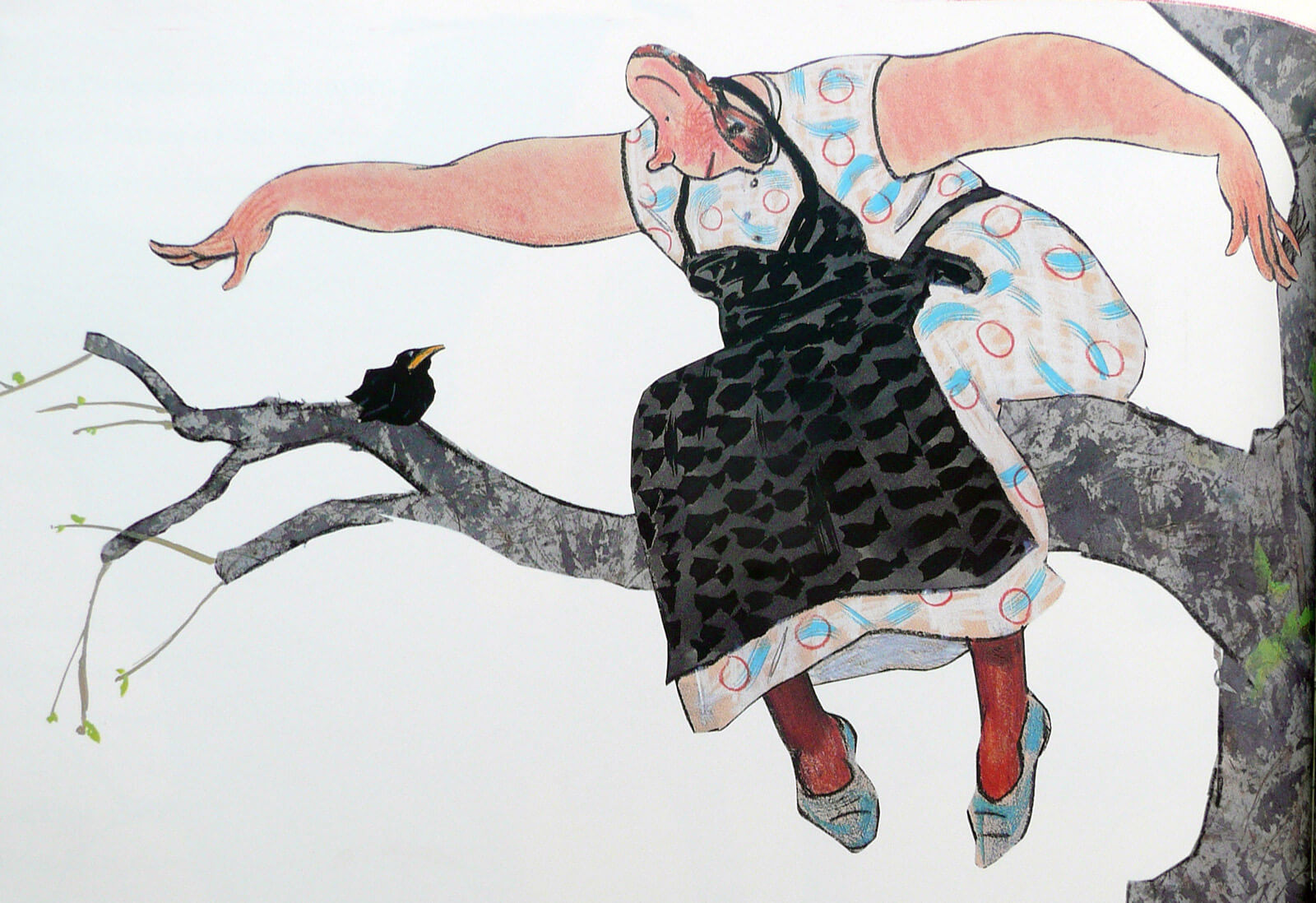 This Mrs. Meyer always worries about nothing. Until one day she finds a young blackbird in the vegetable garden. Her endless worries are gone; she now really has something to care for. She feeds the bird, teaches it to fly, and then spreads her own wings.